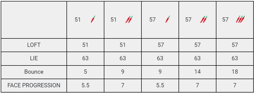 El Chili Wedge combina la estética clásica japonesa con una funcionalidad innovadora diseñada para dominar el juego corto. Con una elegante forma de lágrima, una cabeza compacta de cuello recto (sin offset) y una línea superior fina, este wedge ofrece la apariencia limpia y tradicional que los jugadores avanzados prefieren al alinearse frente a la bola.